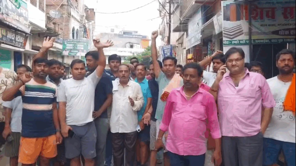 सीवान:– महाराजगंज में ज्वेलरी दुकान से 20 लाख की रंगदारी मांगने और फायरिंग की घटना के विरोध में व्यवसायियों ने महाराजगंज बाजार को बंद रखा है। घटना को लेकर व्यवसायियों में काफी आक्रोश बना हुआ है।व्यवसाई सड़क पर उतरकर सभी दुकानों को बंद करा रहे है। वहीं महाराजगंज के नखास चौक पर आगजनी कर सड़क को जाम कर दिया है।अपराधियों की गिरफ्तारी और व्यवसायियों को सुरक्षा की मांग को लेकर जमकर प्रदर्शन किया जा रहा है।