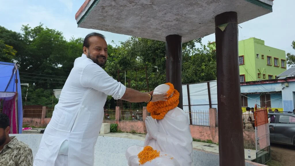 सिवान :– महात्मा गांधी की जयंती पर आज महाराजगंज के गांधी शांति उद्यान में बिहार विधान परिषद के सदस्य बिनोद कुमार जायसवाल ने बापू की प्रतिमा पर माल्यार्पण करते हुए अपना श्रद्धा सुमन अर्पित किया। इस मौके पर स्वतंत्रता सेनानी के परिजनों को, महाराजगंज के वरिष्ठ नागरिकों को विधान पार्षद द्वारा अंग वस्त्र देकर सम्मानित किया गया। इस मौके पर महाराजगंज विधानसभा क्षेत्र से भावी प्रत्याशी विशाल कुमार जायसवाल, कमलेश कुशवाहा, पूर्व विधायक मानिक चंद्र राय के पुत्र रविन्द्र राय, मुखिया वीरेंद्र साह, मोहन कुमार पद्माकर, अरविंद कुमार, राकेश कुमार, उमत मियां, शिव जी प्रसाद के साथ कई सम्मानित लोग उपस्थित थे।
