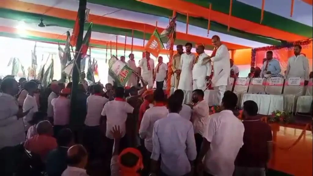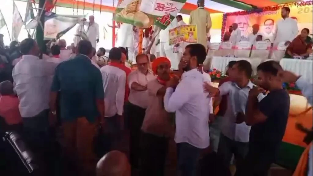 सिवान:– दारौंदा 109 विधानसभा में एनडीए की कार्यकर्ता सम्मेलन का आयोजन किया गया था। इस कार्यकर्ता सम्मेलन में दरौंदा विधानसभा के दो प्रबल दावेदार के समर्थक आपस में भीड़ गए और धक्का मुक्की करने लगे जिससे एनडीए कार्यकर्ता सम्मेलन में गहमागहमी काफी देर तक देखने को मिला।