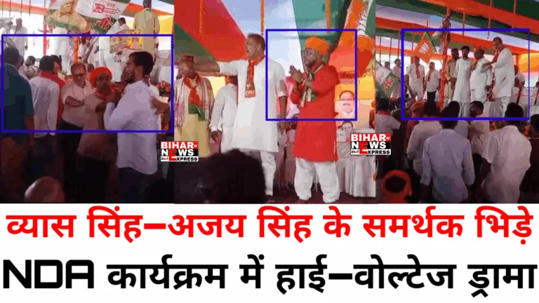 बता दे की दारौंदा से अभी भाजपा के विधायक कर्णजीत सिंह उर्फ व्यास सिंह है जो एनडीए के प्रबल दावेदार हैं क्योंकि वह अभी वर्तमान में विधायक हैं। वही दूसरी तरफ दरौंदा से विधायक रह चुकी पूर्व सांसद कविता सिंह और उनके पति अजय सिंह भी एनडीए यानी कि जदयू से टिकट की दावेदारी कर रहे हैं। एनडीए कार्यक्रम में मंत्री मंगल पांडेय भी पहुंचे हुए थे। एनडीए के कार्यकर्ता सम्मेलन में दोनों दिग्गज नेता काफी संख्या में समर्थकों के साथ सभा स्थल पर पहुंचे जहां पर एक तरफ विधायक व्यास सिंह के समर्थक व्यास सिंह जिंदाबाद के नारे लगा रहे थे वहीं दूसरी तरफ जदयू नेता अजय कविता सिंह के समर्थक अजय सिंह जिंदाबाद के नारे लगा रहे थे।अपने नेताओं के नारे लगाते हुए समर्थक इतने ज्यादा उत्साहित हो गए कि एक दूसरे से ही भीड़ गए। दोनों नेताओं के समर्थकों में धक्का मुक्की होने लगी। मंत्री मंगल पांडेय के सामने ही दोनों नेताओं के समेत अपने अपने नेता के लिए नारे लगाते दिखे। माहौल गरमाता देख मंत्री मंगल पांडेय ने विधायक व्यास सिंह और जेडीयू नेता अजय सिंह को इशारा कर समर्थकों को चुप कराने का निर्देश दिया। इसके बाद विधायक व्यास सिंह अपने समर्थकों से हाथ जोड़ कर शांत रहने की अपील करने लगे वही जेडीयू नेता अजय सिंह ने भी अपने समर्थकों से शांत रहने की अपील की। तब जाकर दोनों नेता के समर्थक शांत हुए लेकिन जिस तरह से दोनों नेताओं के समर्थकों के बीच धक्का मुक्की हुई वो चर्चा का विषय बन गई की दारौंदा विधानसभा में एनडीए में ही वर्चस्व की लड़ाई देखने को मिलेगी।
