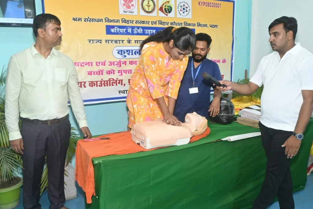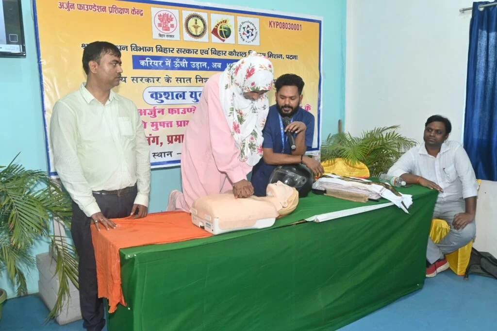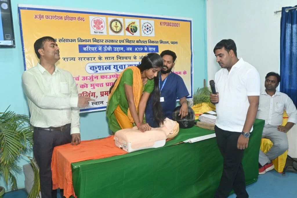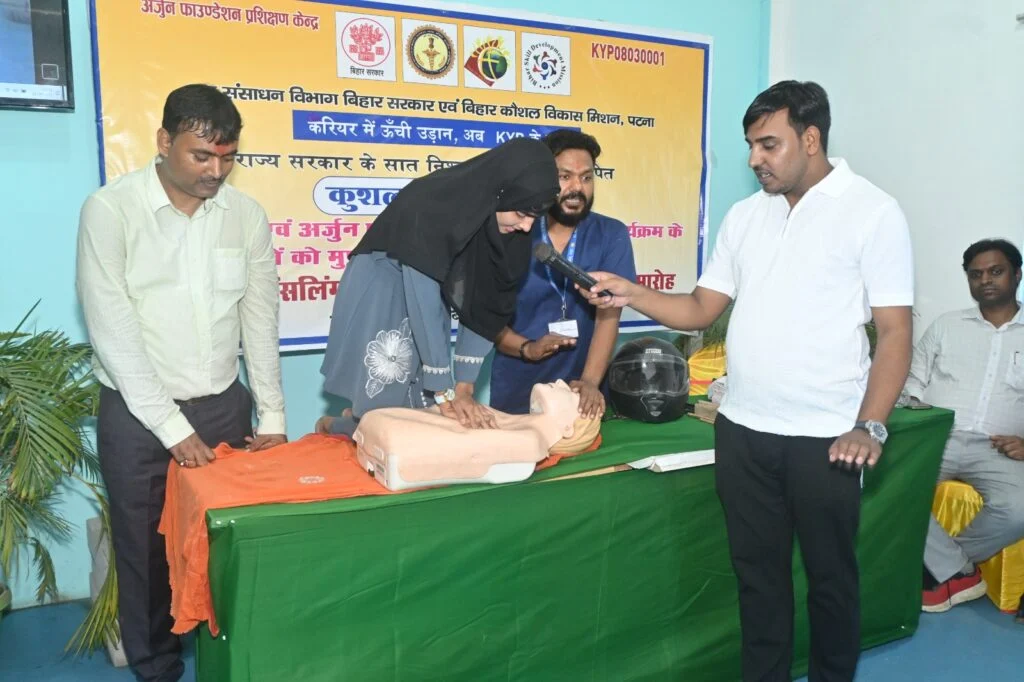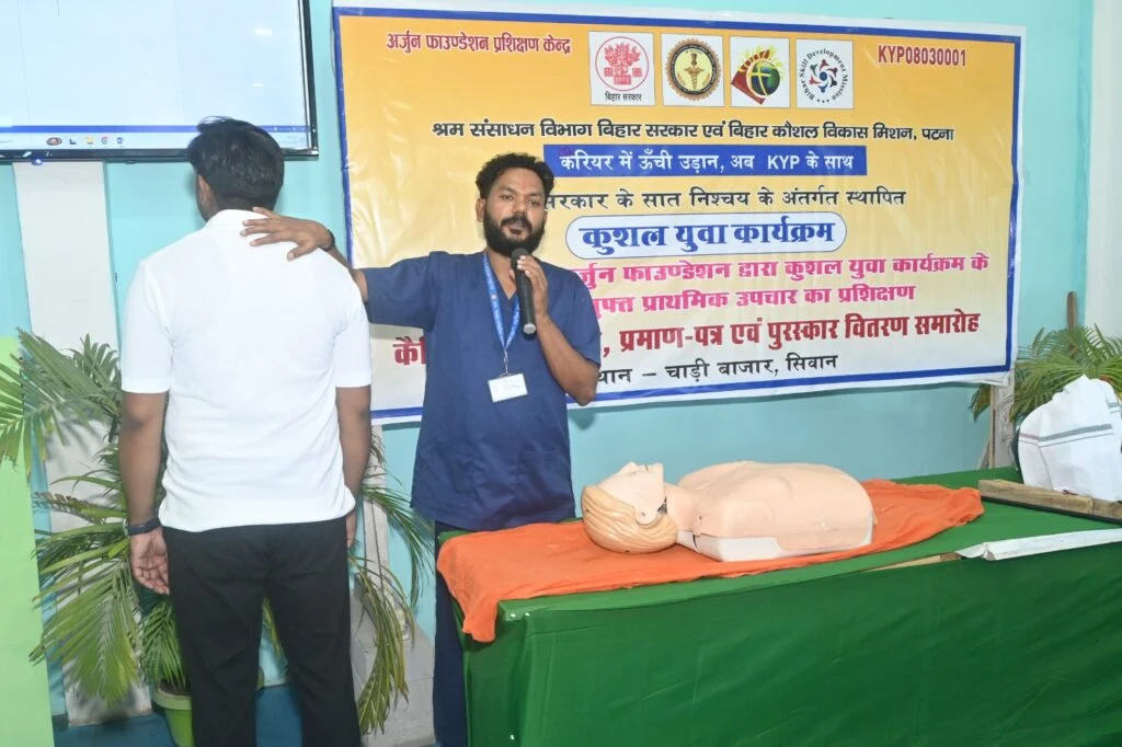सिवान/जीबीनगर – पटना एम्स के उपअधीक्ष एव ट्रामा एमरजेंसी के हेड डॉ अनिल ने कहा है कि कुशल युवा कार्यक्रम युवाओं के भविष्य निर्माण में बड़ी भूमिका निभा रहा है। इससे युवाओं को रोजगार के बड़े अवसर भी मिल रहे हैं। पटना एम्स के डॉ अनिल एन्ड उनकी टीम के द्वारा तरवारा के चांडी बाजार स्थित अर्जुन फाउंडेशन में कुशल युवा कार्यक्रम में प्रशिक्षण लें रहे एव बेहतर प्रदर्शन करनेवाले 250 विद्यार्थियों के बीच प्राथमिक उपचार के मुफ्त प्रशिक्षण के उपरांत प्रमाणपत्र वितरित किया और बच्चों को बेहतर भविष्य की राह दिखाई। डॉ ने बताया कि राज्य सरकार के सात निश्चय के तहत संचालित केवाईपी कोर्स युवाओं को मुफ्त कौशल प्रशिक्षण प्रदान करता है, जिससे उन्हें रोजगार के बेहतर अवसर मिलते हैं।
