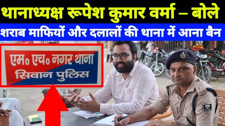 सिवान :– एमएच नगर थाना का चार्ज संभालते ही गरजे थानाध्यक्ष रूपेश कुमार वर्मा – बोले, शराब माफिया और दलालों की थाना में अब कोई जगह नहीं होगी। एमएच नगर थाना में शनिवार को रूपेश कुमार वर्मा ने नए थानाध्यक्ष के रूप में कार्यभार संभाला। पदभार ग्रहण करते ही उन्होंने कड़ा संदेश जारी करते हुए कहा कि थाना परिसर और पुलिस व्यवस्था में शराब माफियाओं व दलालों की कोई जगह नहीं होगी।थानाध्यक्ष वर्मा ने साफ शब्दों में कहा – “शराब माफियाओं और दलालों को थाना में घुसने नहीं दिया जाएगा, अगर कोई कोशिश करेगा तो सख्त कार्रवाई होगी।” उन्होंने भरोसा दिलाया कि जनता की समस्याओं का समाधान पूरी ईमानदारी और पारदर्शिता से किया जाएगा। वर्मा ने कहा कि आम लोगों को बेवजह परेशान नहीं किया जाएगा, लेकिन अपराधियों के खिलाफ जीरो टॉलरेंस की नीति अपनाई जाएगी। कार्यभार संभालते ही थानाध्यक्ष का यह कड़ा रुख स्थानीय लोगों के बीच चर्चा का विषय बन गया है।