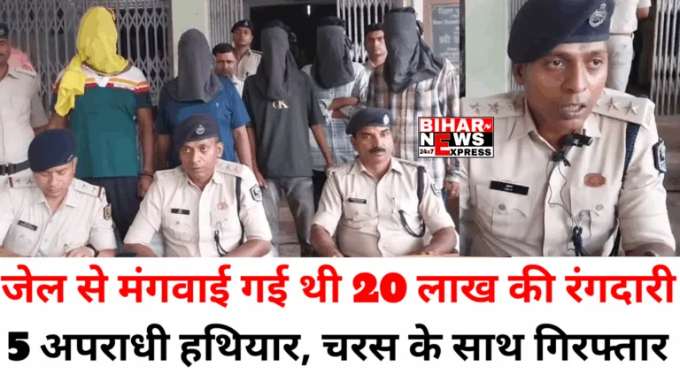 सीवान:– स्वर्ण व्यवसाई से रंगदारी और फायरिंग मामले में पुलिस को बड़ी कामयाबी मिली है। पुलिस ने 24 घंटे के अंदर ही कांड का खुलासा कर दिया है। पुलिस ने घटना में शामिल पांच बदमाशों की गिरफ्तारी कर ली है। गिरफ्तार बदमाशों के पास से दो देशी पिस्टल, छह जिंदा कारतूस, चार मोबाइल फोन, एक बाइक और 438 ग्राम चरस जैसा मादक पदार्थ बरामद किया गया है। अपराध की योजना बनाने के दौरान बदमाशों की गिरफ्तारी की गई है।