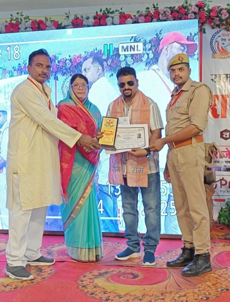 सिवान:– अयोध्या की पावन नगरी श्रीराम जन्मभूमि पर राष्ट्रीय सेवा रत्न सम्मान 2025 का भव्य आयोजन रामकृष्ण सेवा फाउंडेशन, अयोध्या (उ.प्र.) द्वारा किया गया। इस विराट समारोह में पूरे भारतवर्ष के रक्तवीरों को सम्मानित किया गया। इसी क्रम में सिवान, बिहार की सबसे पुरानी रक्तदान संस्था “सिवान ब्लड डोनर क्लब” के संस्थापक अध्यक्ष नीलेश वर्मा “नील” जी को उनकी 32 वर्षों की निरंतर रक्तदान एवं समाज सेवा की अद्वितीय यात्रा हेतु अंगवस्त्र, प्रशस्ति पत्र एवं मोमेंटो से सम्मानित किया गया।