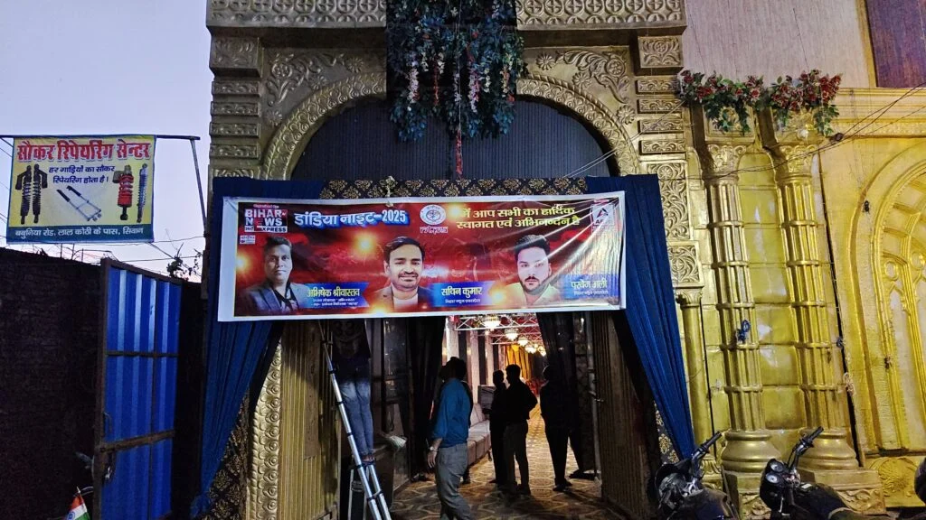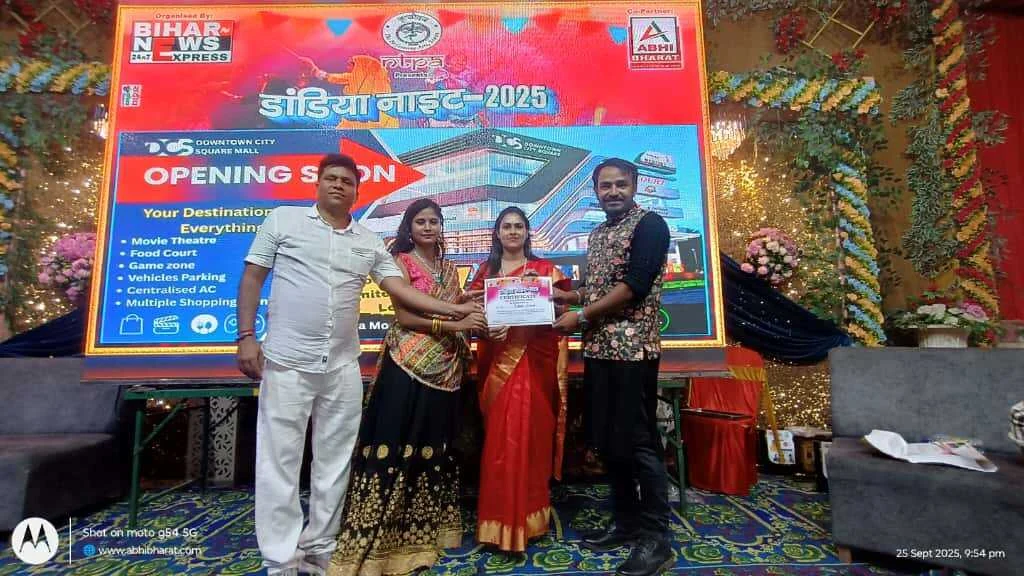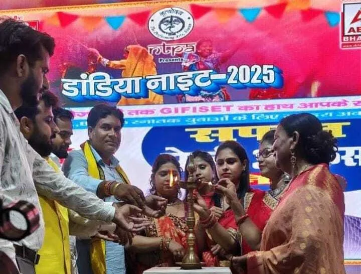 सिवान: बिहार न्यूज एक्सप्रेस और नटपा के सौजन्य से नवरात्रि के अवसर पर गुरुवार को शहर के तुलसी वाटिका में डांडिया नाइट का आयोजन किया गया। जिसमें भारी संख्या में युवतियों और महिलाओं के साथ-साथ युगल जोड़े ने शिरकत करते हुए डांडिया नृत्य किया और जमकर लुत्फ़ उठाया। कार्यक्रम की शुरुआत भाजपा नेत्री सह भाजपा से विधानसभा की दावेदार रूपल आनंद, भावी विधानसभा प्रत्याशी सह वार्ड पार्षद आजम अली, अभिनव कुमार रानू, नगर पार्षद पल्लवी प्रिया उर्फ पूजा कुमारी, भाजपा महिला मोर्चा की जिलाध्यक्ष सुनीता जायसवाल, पूर्व बीडीओ ताप्ती वर्मा, लोजपा के युवा नेता आदित्य पांडेय आदि ने संयुक्त रूप से द्वीप प्रज्ज्वलित किया।