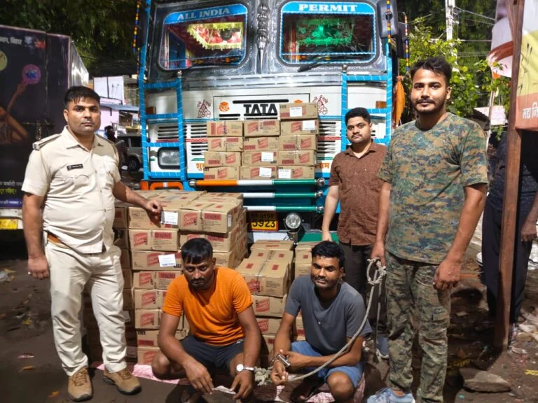 सिवान : उत्पाद विभाग की टीम ने गुप्त सूचना के आधार पर छापेमारी कर गुठनी थाना क्षेत्र के गुठनी चेक पोस्ट से शराब के साथ दो तस्कर को गिरफ्तार कर लिया। जबकि एक 12 चक्का ट्रक को जब्त कर लिया। मामले में उत्पाद अधीक्षक शशांक वर्मा ने बताया कि टीम को गुप्त सूचना मिली थी कि थाना क्षेत्र के गुठनी चेक पोस्ट होते हुए एक 12 चक्का ट्रक शराब की खेप लेकर आ रहा है। सूचना पर उत्पाद थाना के सअनि बिकेश कुमार राय ने जांच शुरू की। जांच के दौरान गुठनी चेक पोस्ट के पास एक ट्रक आता दिखाई दिया, जिसे रोकने का प्रयास किया गया लेकिन चालक गाड़ी लेकर भागने लगा। जिसे पुलिस बल की मदद से पकड़ लिया गया। जांच के दौरान ट्रक के अंदर से 950.400 लीटर विदेशी शराब बरामद किया गया। वहीं दो तस्कर को गिरफ्तार किया गया। गिरफ्तार तस्कर सह चालक मोतीहारी जिला के केसरिया थाना क्षेत्र के वड़ाडिह वैरीया निवासी मो. सैदुल्लाह एवं मो. जकाउल्लाह है।